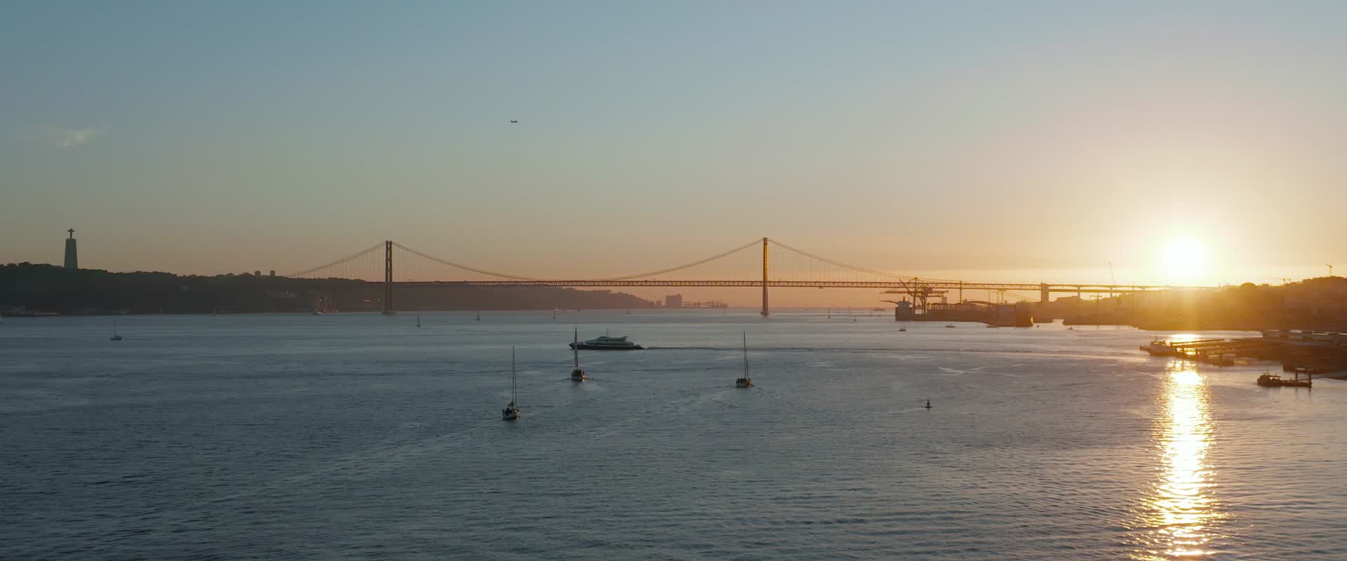 Aerial Sunset over Tejo River, Lisbon - Portugal