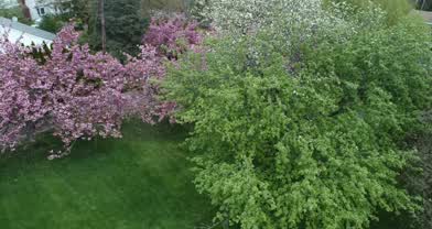 Aerial montage of springtime flowering trees