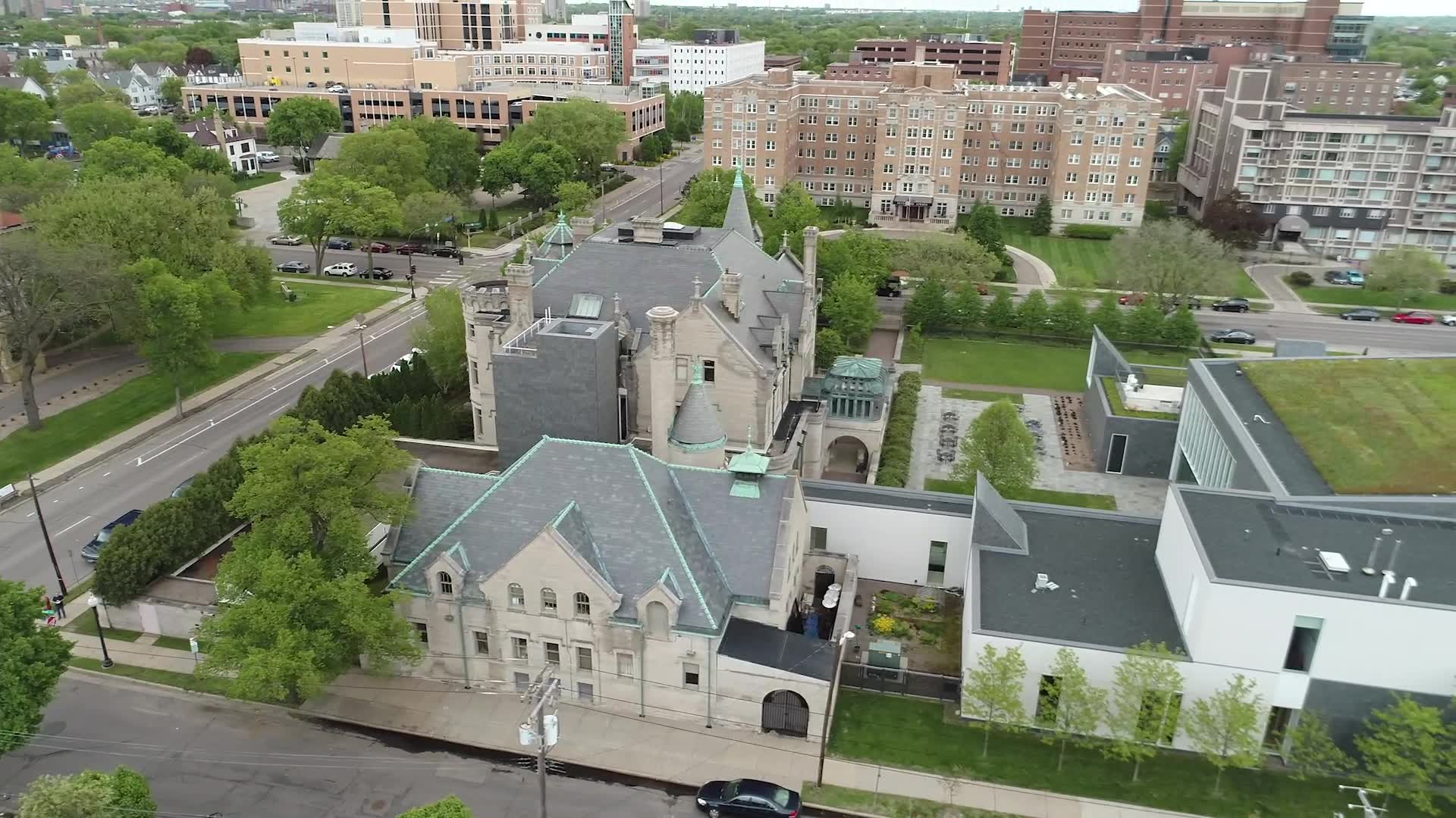 This historic mansion is part of the American Swedish Institute in Minneapolis and looks awesome from both the street and the sky. Some nice views of the Minneapolis skyline from here, too.