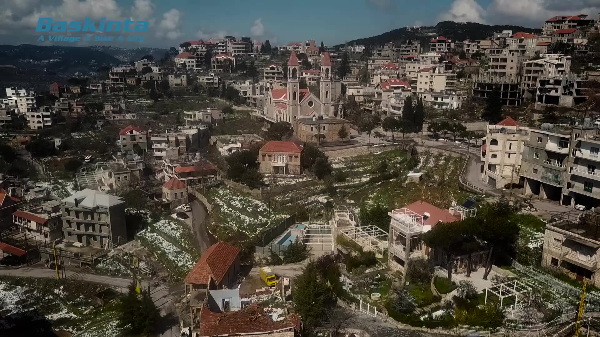 Take in these fabulous aerial views of a famous mountain village in Lebanon, compliments of AirVuz contributor and pilot DigiWeb The village is called Bashkinta, and it's located about 45 km (just under 30 mi.) northeast of Beirut. The village lies near the foot of Mount Sannine, one of the highest peaks of the Mt. Lebanon range, which has a peak elevation of 2.625k meters above sea level (around 8.6k ft.). With a moderate mountain climate and ruins dating to Phoenician times (ie, 2500 - 10000 BC), it's a popular alpine getaway spot.