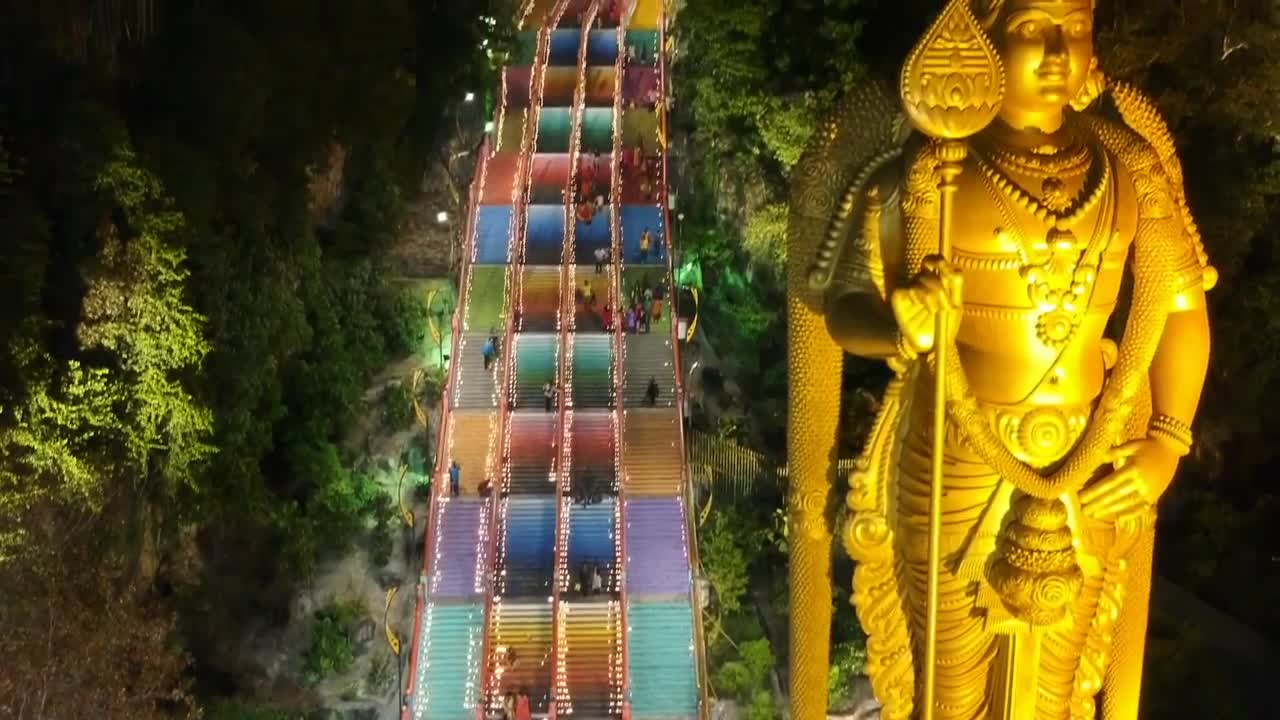 This is Batu Caves. The biggest Hindu Temple situated in Malaysia. The footage is taken on a special Hindu day called Karthigai Deepam where the Hindu's will light up on the 272 staircases as a symbol of this special day. which fall once in a year.