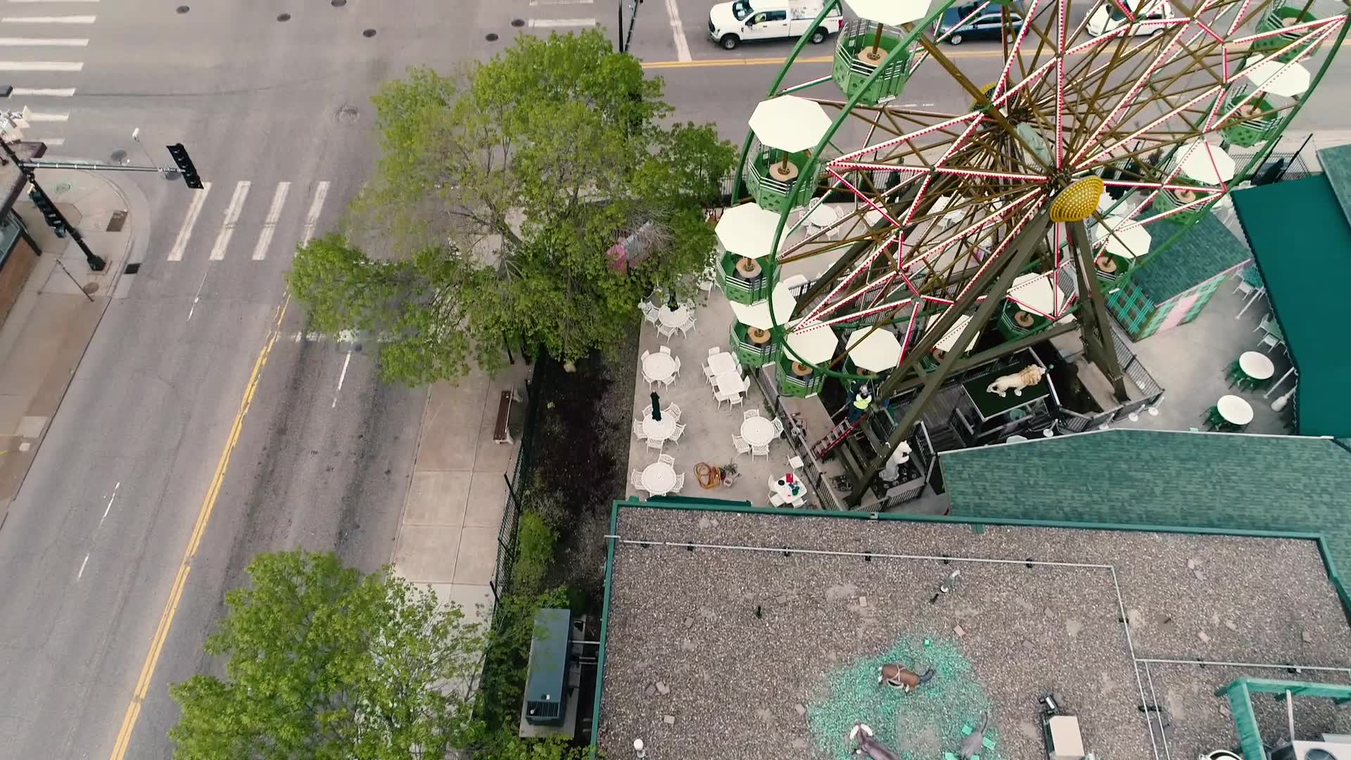 Flying at Betty Danger's Country Club in Northeast Minneapolis, featuring the ferris wheel where you can enjoy a drink while taking in the view of the city.