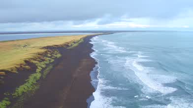 Beautiful aerial video of Black Sand Beach in Iceland