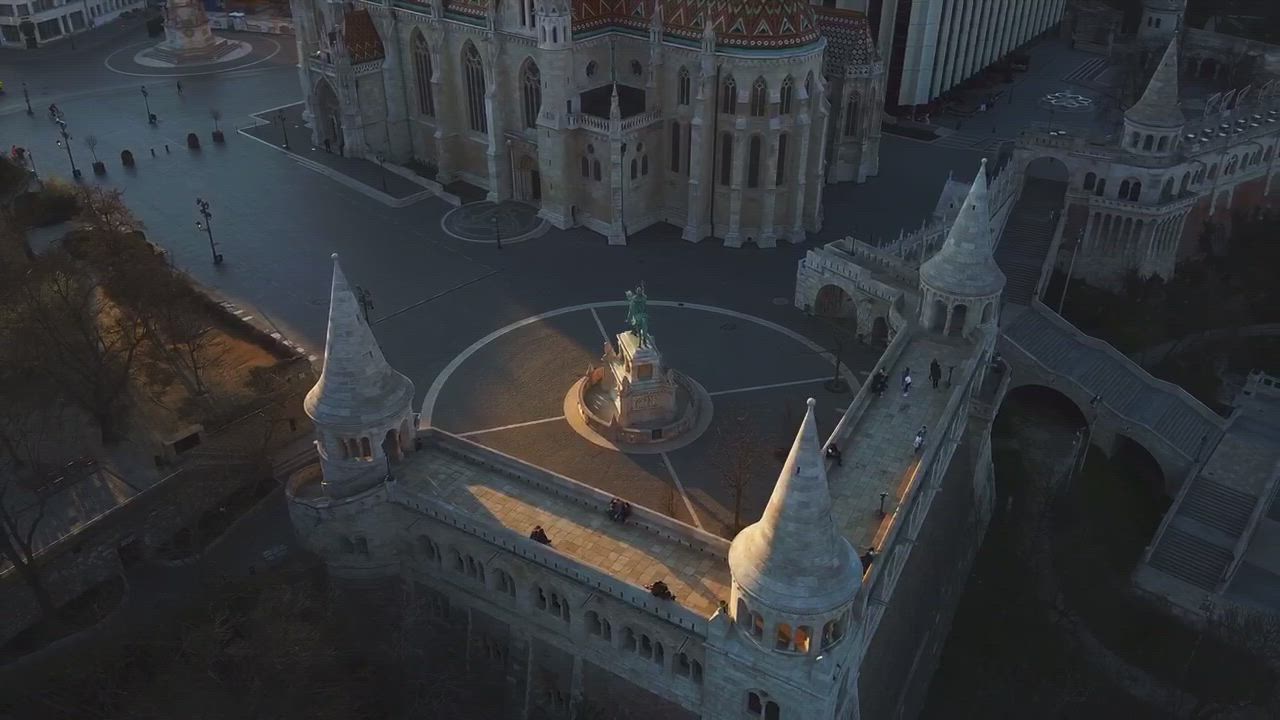 A cinematic video of the Buda Castle and its church the great Mathias Church in Budapest Hungary.