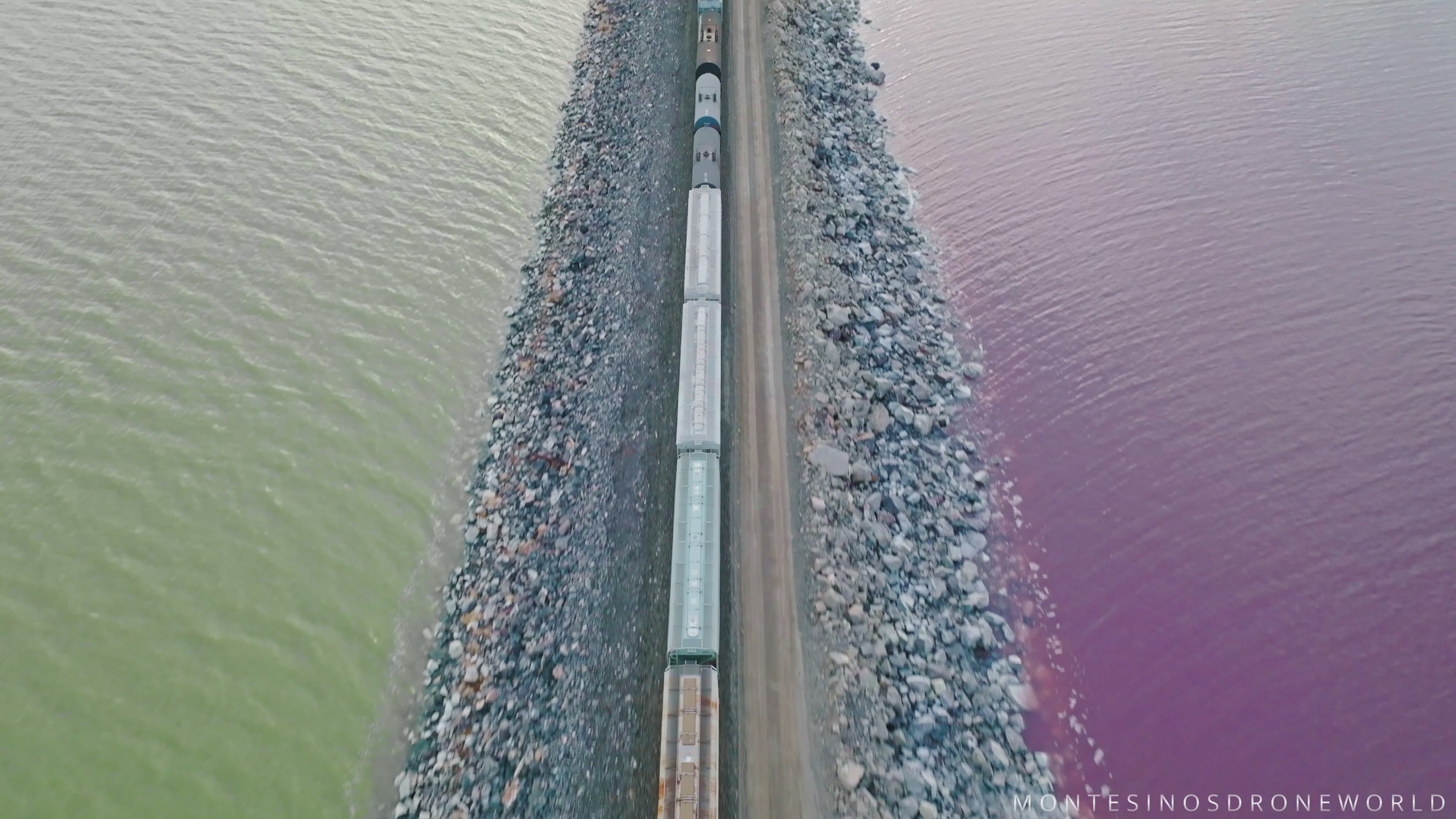 Capturing Trains with Drone it has become one of my favourite ways to improve my pilot skills lately, it's like a challengue to adjust your speed and movements and get more dynamic shots while trying to have a nice composition too. i did this footage in two different locations, the first one is the Great Salt Lake in Utah, over a railroad that crosses the lake and the most interesting part it has two different colors one on each side, a beautiful Pink and the other one sometimes green other times blue, is just amazing is my favourite place to capture trains because it's far and lonely, clear from obstacles so you can be focus in get the best shot only and the views are stunning. second location is in Bluffdale Utah, really close from my home and it's a beautiful place also, with really nice views, I did add some winter shots too. hope you can enjoy this video and the edition, specially the beautiful views.