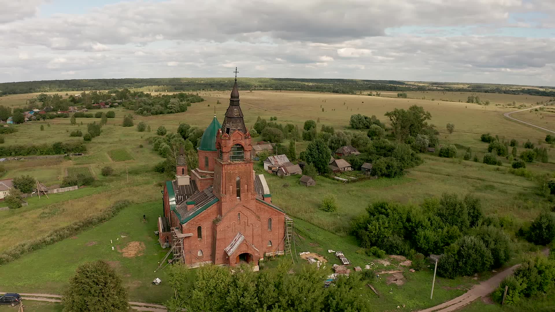 Contributor Maikl_rus created this beautiful drone video of Russian church which had some unfortunate timing: it was built on the eve of the Russian Revolution. Finished in 1913, the Church of Pet is located in the Ryazan Oblast (province), near the eastern edge of the Great East European Plain. For reasons that aren't clear, the giant church was built next to a tiny village; based on its size, it would have been much more suitable for the provincial capital city. Not surprisingly, it was heavily damaged in the ensuing turmoil.