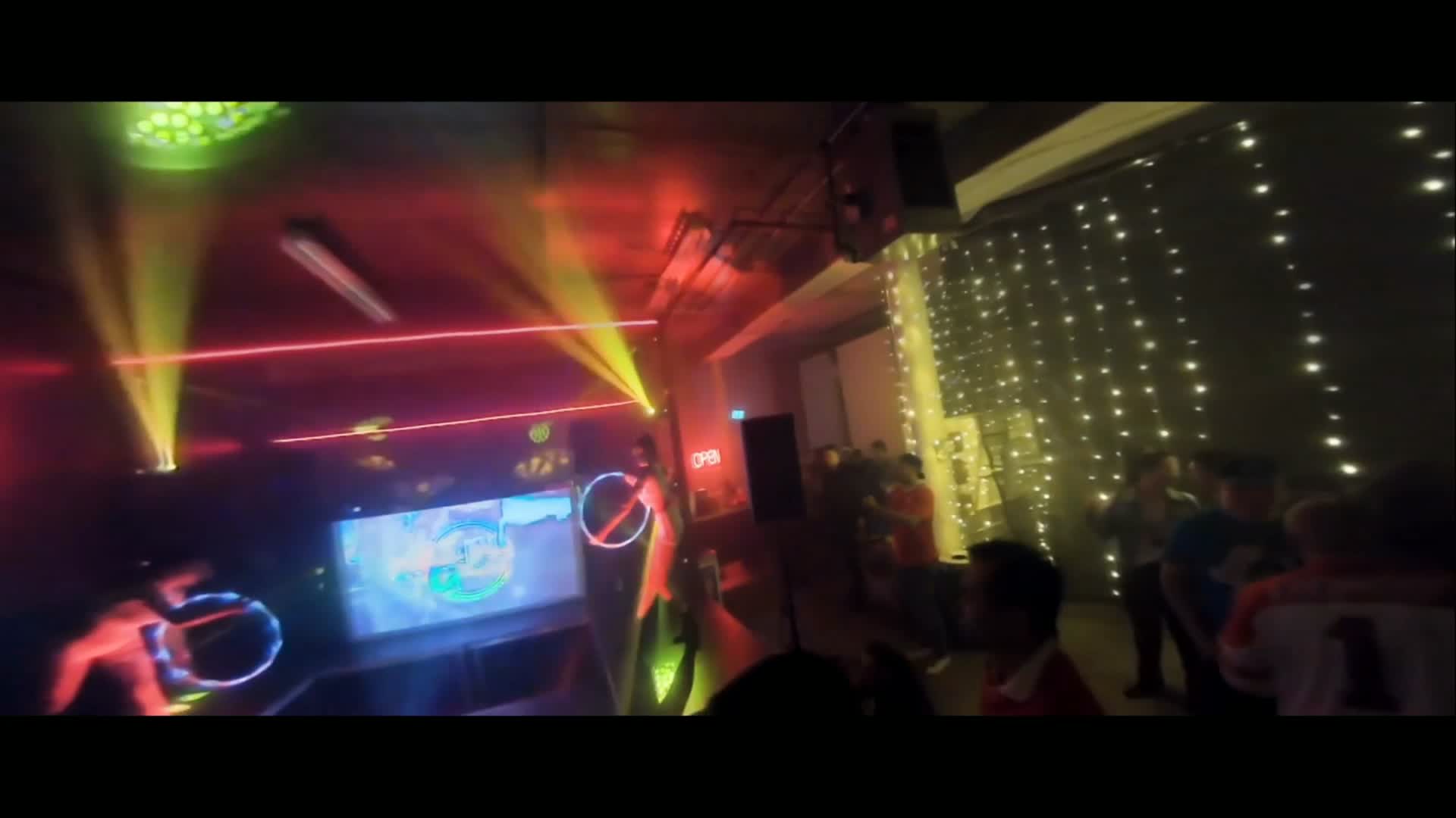Did some cinewhooping with the tomoquads WhoopeeHD at a Canada Day event! The club setup and lighting made for a killer venue to fly through! The dancer's routine made for an awesome point of interest to fly around. I tried to pick an opportune time to fly through the hoop i swear haha. The size of the quad made it easy to fly and navigate above the crowd but couldn't really fly lower as the industrial size fan at the back of the dance floor made for a very turbulent low fly by. Actually before more ppl filled up the dance floor, the wind from the fan was pushing me to the back wall behind the DJ if I wasn't careful (i did tap it a few times...). It's easy to see the shortfall of the caddx turtle v2 in low light situation as everything looks muddy but a small rig such as this at about 81g with a 300mah 2s lipo, it is as people and crowd friendly as you can get.