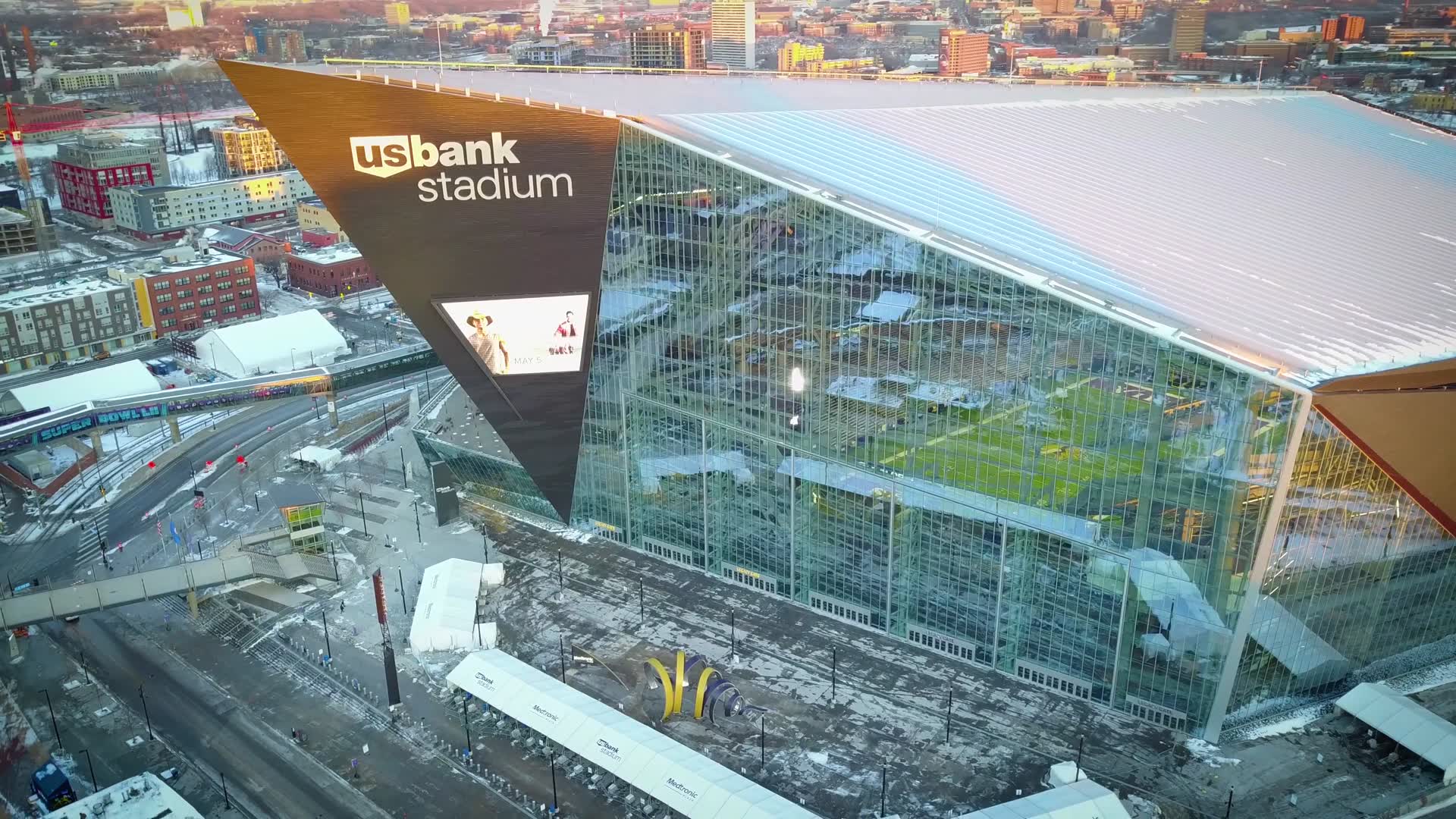 A cold evening drone flight around US Bank Stadium (home of the Vikings and Super Bowl 52) in Minneapolis, Minnesota. Aerial Footage taken with my DJI Mavic Pro. Music: "Let's Go Crazy" By: Prince