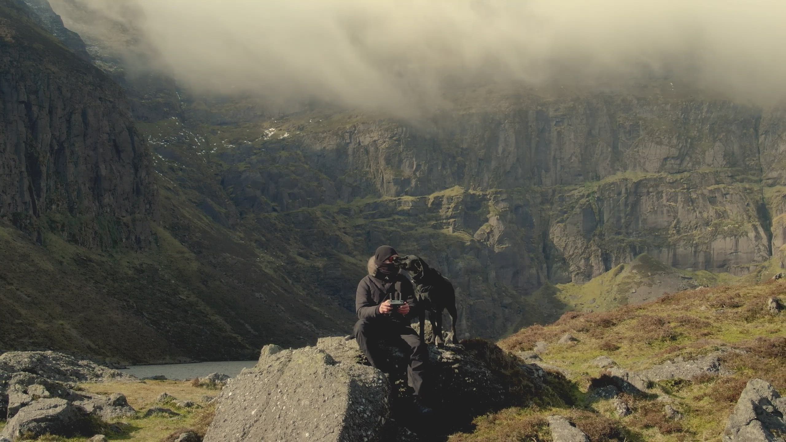Cuminshgaun lake is situated in co. Waterford in ireland surrounded by Comeragh mountains Here's is little dronie from the place with my best buddy Loki
