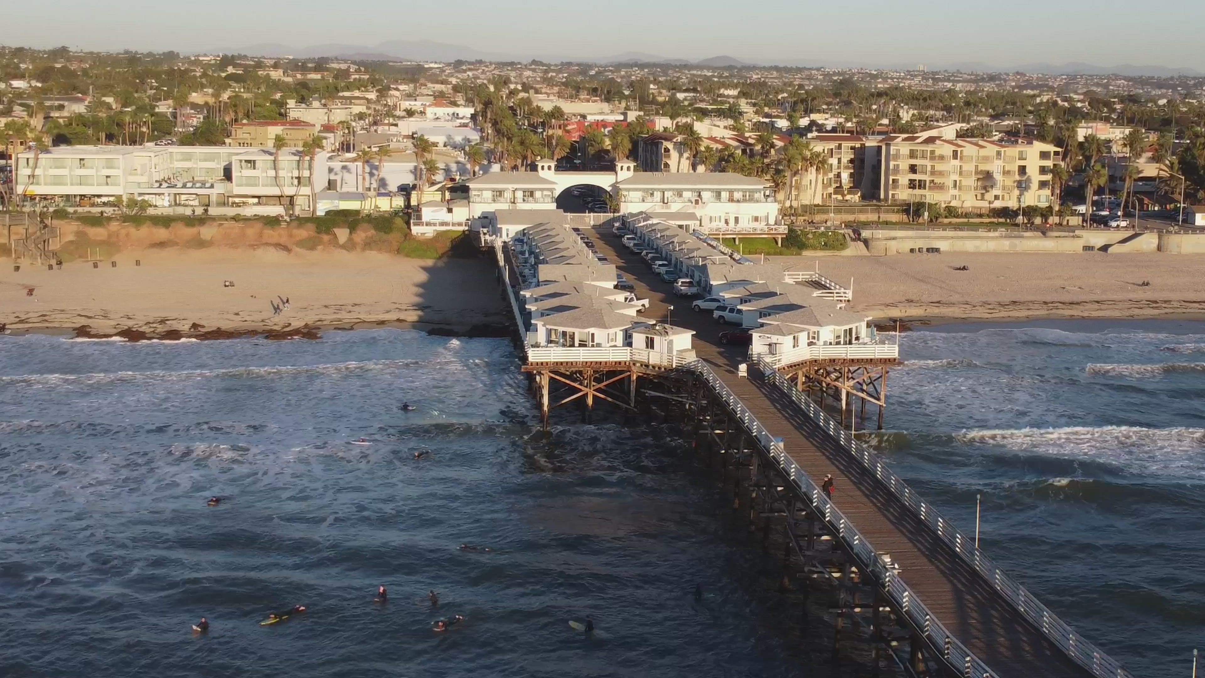AirVuz contributor onewheeldrone brings us this excellent drone video of Crystal Pier, one of the landmarks of Pacific Beach, a neighborhood of San Diego, California. Pacific Beach is located just north of Mission Bay, roughly between Sea World to the south and La Jolla to the north. Once considered an inexpensive neighborhood for surfers and college students, in recent years it's priced many of these would-be residents out of the market. Pacific Beach continues to be home to one of the city's most dynamic nightlife scenes.