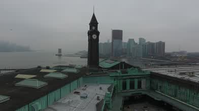 Flying a DJI Phantom 4 above the historic Hoboken Terminal and the Erie Lackawanna Terminal Clock Tower.