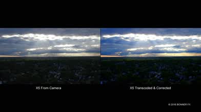 Here is a side by side comparison of the DJI inspire 1 pro X5 camera straight from the camera and then transcoded and corrected.