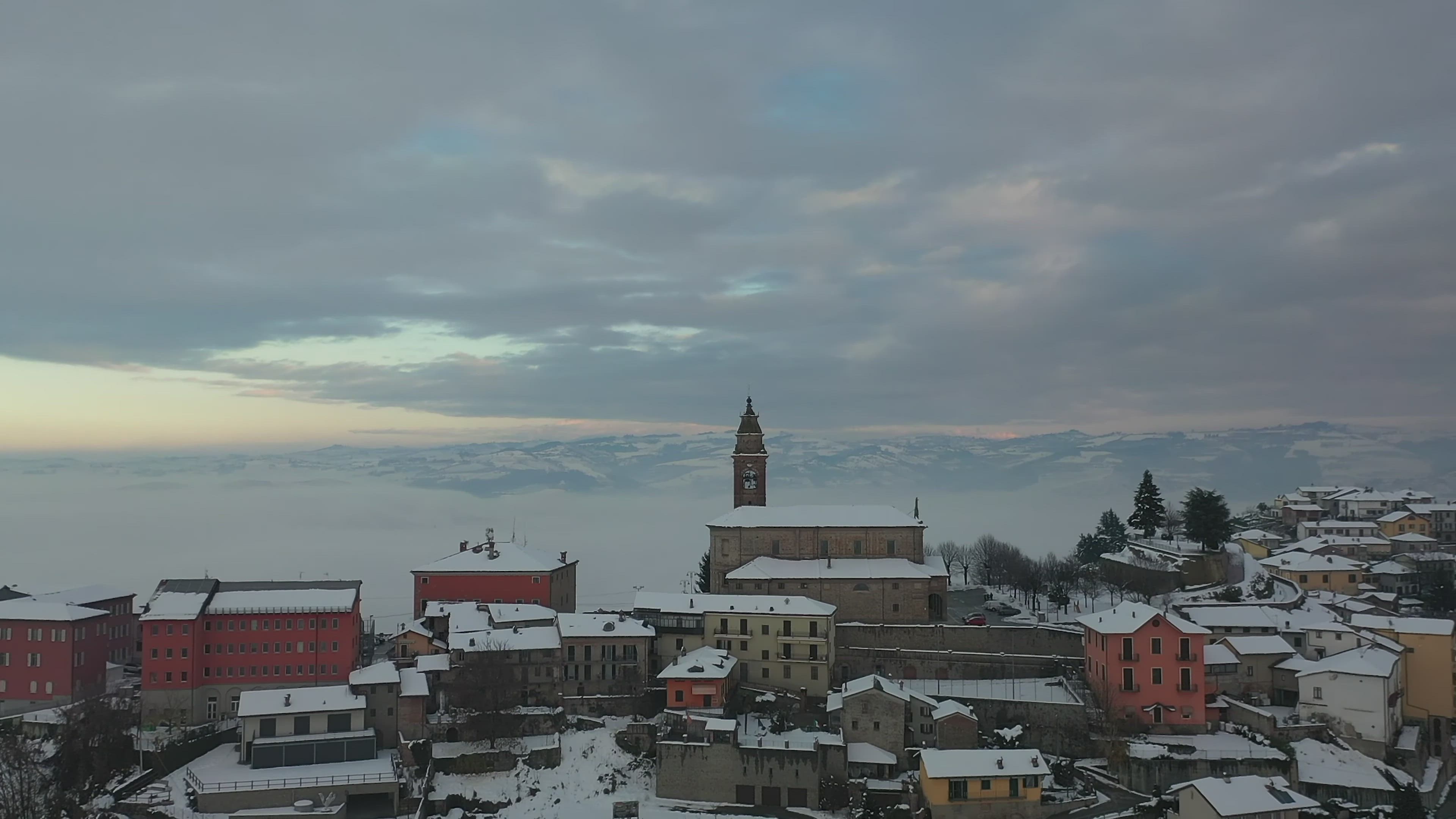 For a first upload to AirVuz, brand-new contributor Eddyzax brings us this excellent drone video of a small hilltop town near the foothills of the Alps Mountains in northern Italy. The video was shot on a winter day over the commune of Diano d'Alba in Cuneo, the southernmost of the eight provinces of the region of Piedmont. It's about a 45 minute drive southeast of the city of Turin, the capital of the Piedmont Region. It's part of a hilly region of Piedmont between the plains to the east and the mountains to the west.