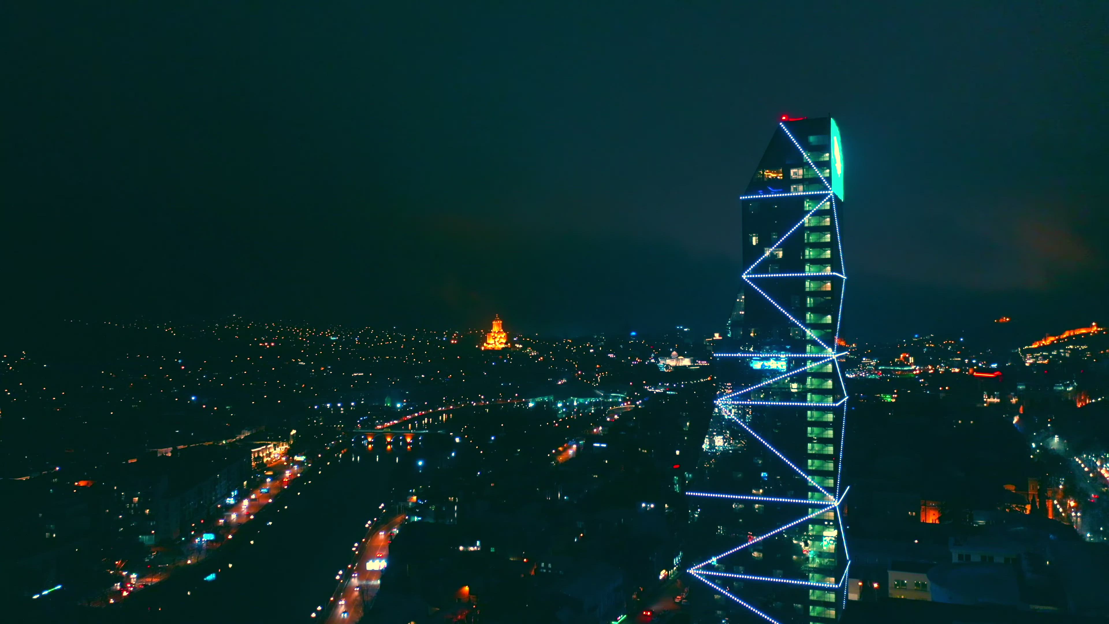 Drone night flight over Tbilisi sights
