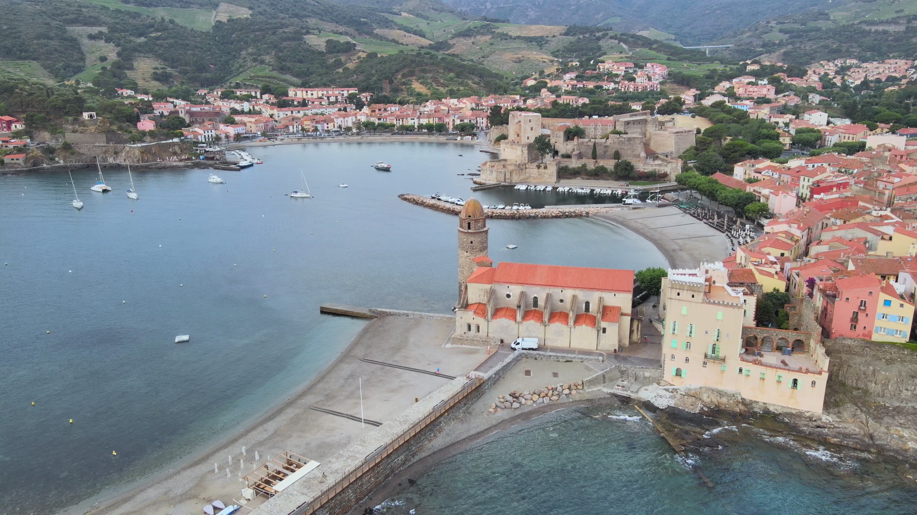 Take in these fantastic drone views of a seaside town in Southern France, compliments of contributor Manx.Cat. The town of Collioure is located in the department of Pyrénées-Orientales, near the western end of France's Mediteranean coastline. Historically, the town occupied an important strategic location on the much fought-over borderlands between France and Spain. While it's been part of France since the 17th century Treaty of the Pyrenees established the "modern" border, the town retains strong Catalan cultural ties.
