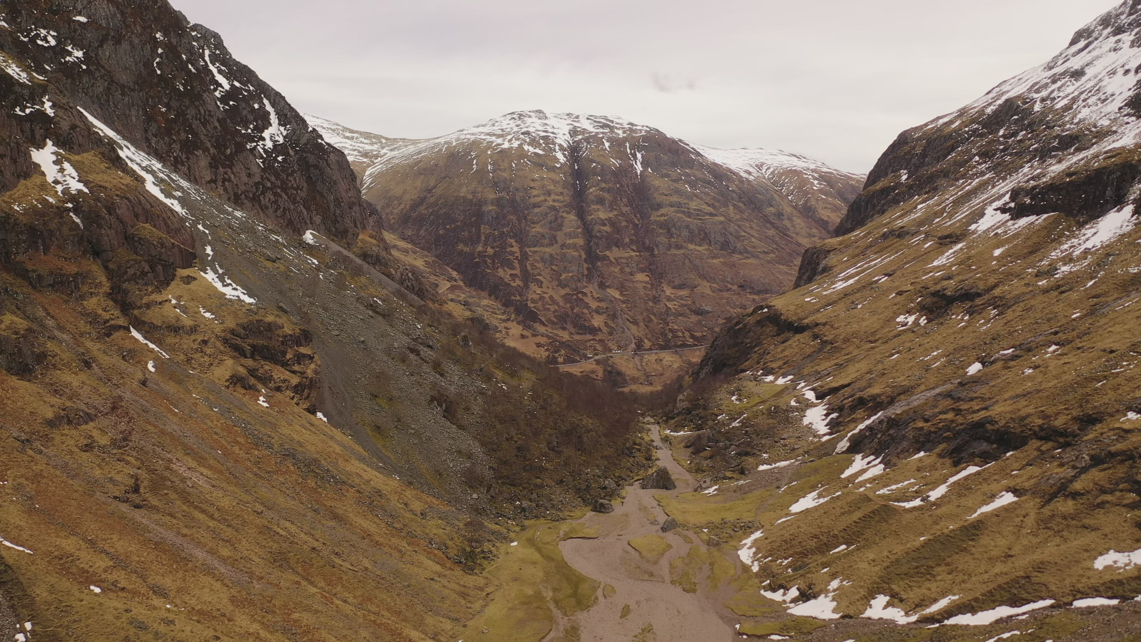 Entry and exit to The Lost Valley Coire Gabhail, Glen Coe Scotland, DJI Mavic Pro 2 4K OR 1080P