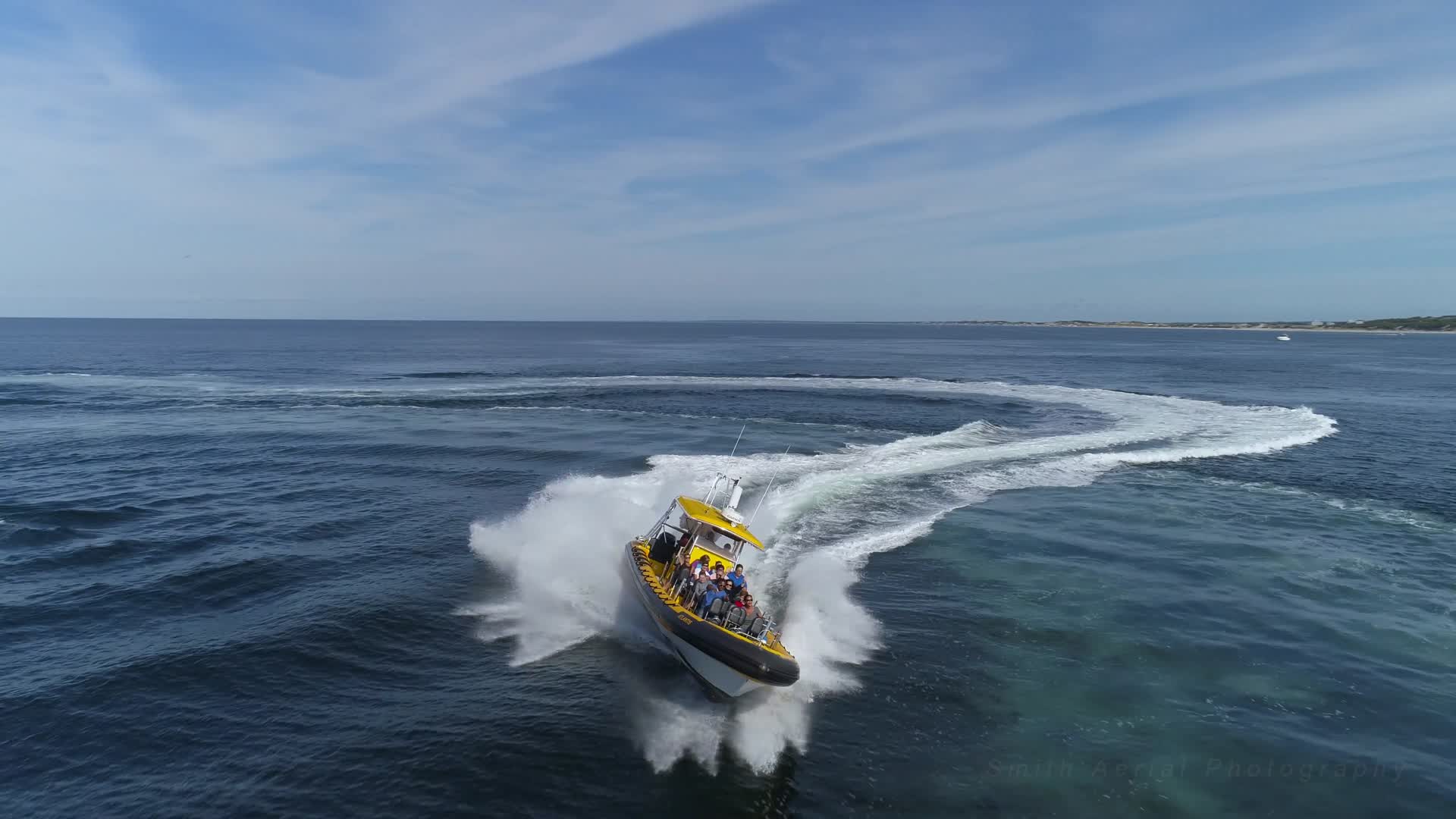 Cape Cod, off of mainland Massachusetts in the New England region of the USA, is one of the country's best whale watching spots. Cape Cod Rib operates a custom-built whale watching boat which will keep up with the fastest whale. The watercraft has a 1000 HP engine, enabling it to hit a top speed of over 60 km/hour (40 mph). Contributor PO3SMith used a drone to show the capabilities of this monster speedboat, which is also used for "joyride" tours. Definitely progress since the whaling days of 1800's New England!