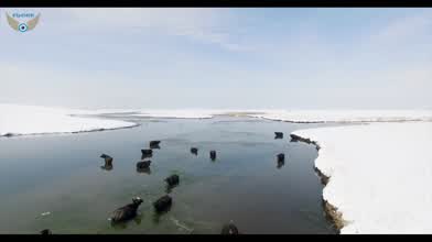 Feeds Buffalo at lake Winter