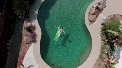 Haylie floating around a pool.