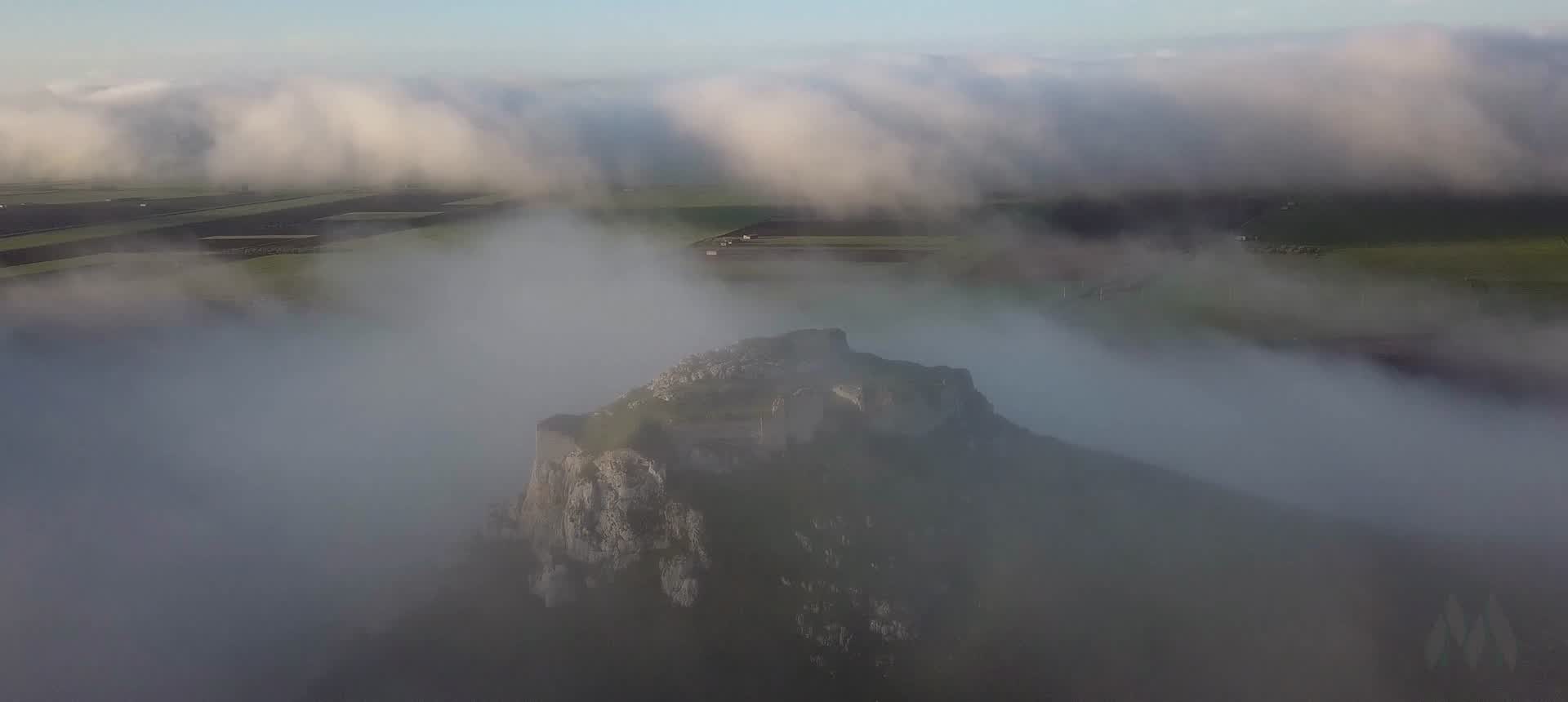 Foggy sunrise over Rocca del Garagnone. Explore the mist and the tender clouds that channel through the valleys of the Parco Nazionale dell'Alta Murgia