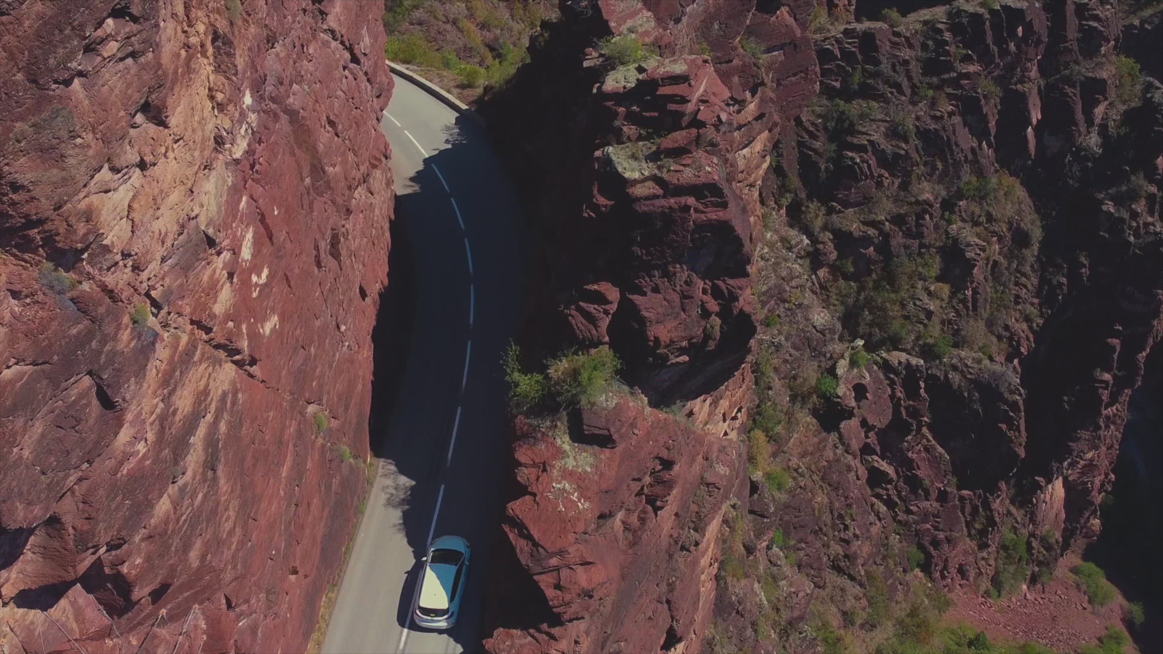 The Daluis gorges were hollowed out by the Var in wine-red colored rocks called pelites and dating from the Permian. This spectacular cut of more than 900 meters made the reputation of the place as "Colorado Niçois". Landscape 4k video. Video filmed wit: DJI Mavic Mini, DJI Osmo Mobile 3, Samsung Galaxy S 20+ 5G.