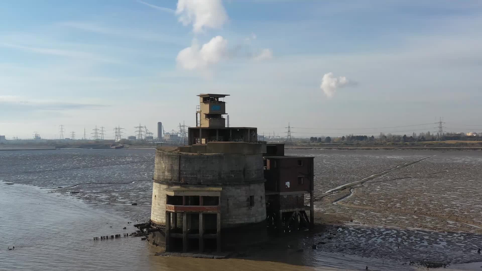 HD Footage of Grain Tower Battery in Kent taken from when the South East UAV Owners met up in November 2019. Grain Tower is a mid-19th-century gun tower situated offshore just east of Grain, Kent, standing in the mouth of the River Medway. It stands about 500 metres (1,600 ft) offshore at the eastern tip of the Isle of Grain, where the mouth of the Medway meets the Thames. It was constructed on the tidal sandbank of Grain Spit and is reached by a causeway running in an east-west direction from the shoreline. Its location enabled the tower's arc of fire to overlap with that of the guns at Garrison Point on the Isle of Sheppey, on the other side of the Medway