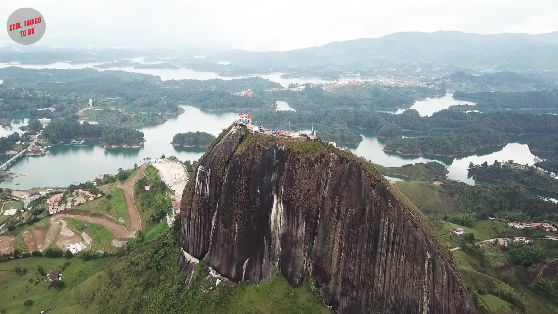 Check out this amazing dronie from atop one of the world's most famous rocks, compliments of contributor shkundas. The Rock of Guatape (El Peñón de Guatapé) is what's known as an inselberg (isolated rock formation) in northwestern Colombia. It rises 200 meters (about 650 ft.) from the base, and is stunningly prominent in the flat terrain in this part of the country. The top of the rock wasn't scaled (at least officially) until the 1950's. Now it is accesslble by a staircase which runs up one of its sides.