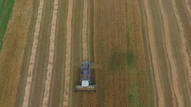Harvesting oat crop in Melhus, Norway by Skarsem & Jakobsen maskinlag DA on a day in september 2017. The view of the harvesting from a Phantom 4.