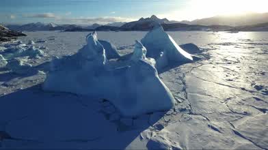 Awesome icebergs of Greenland shot from the sky with a drone.