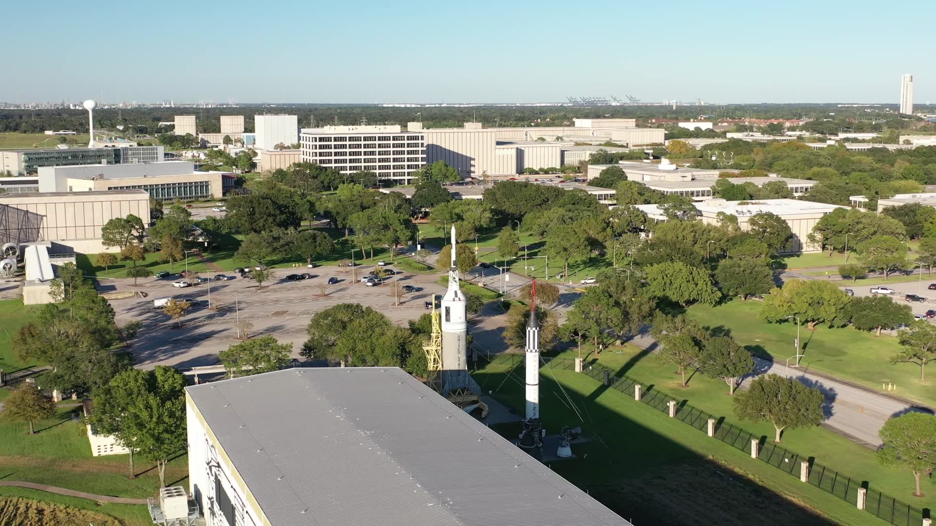 Seen here in this video by Lone Star Drones, the Johnson Space Center is the most important center for manned space flight at the USA's National Aeronautics and Space Administration. Located in the southeastern outskirts of Houston, Texas, its most famous moment was in July, 1969, when Mission Control here directed the Apollo 11 moon landing. The JSC also been a filming location for a number of films, notably two of the biggest blockbusters of the 1990's: Apollo 13 (1995) and Armageddon (1998).