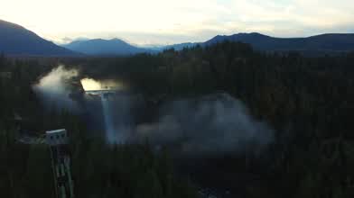 Misty flight up to Snoqualmie Falls