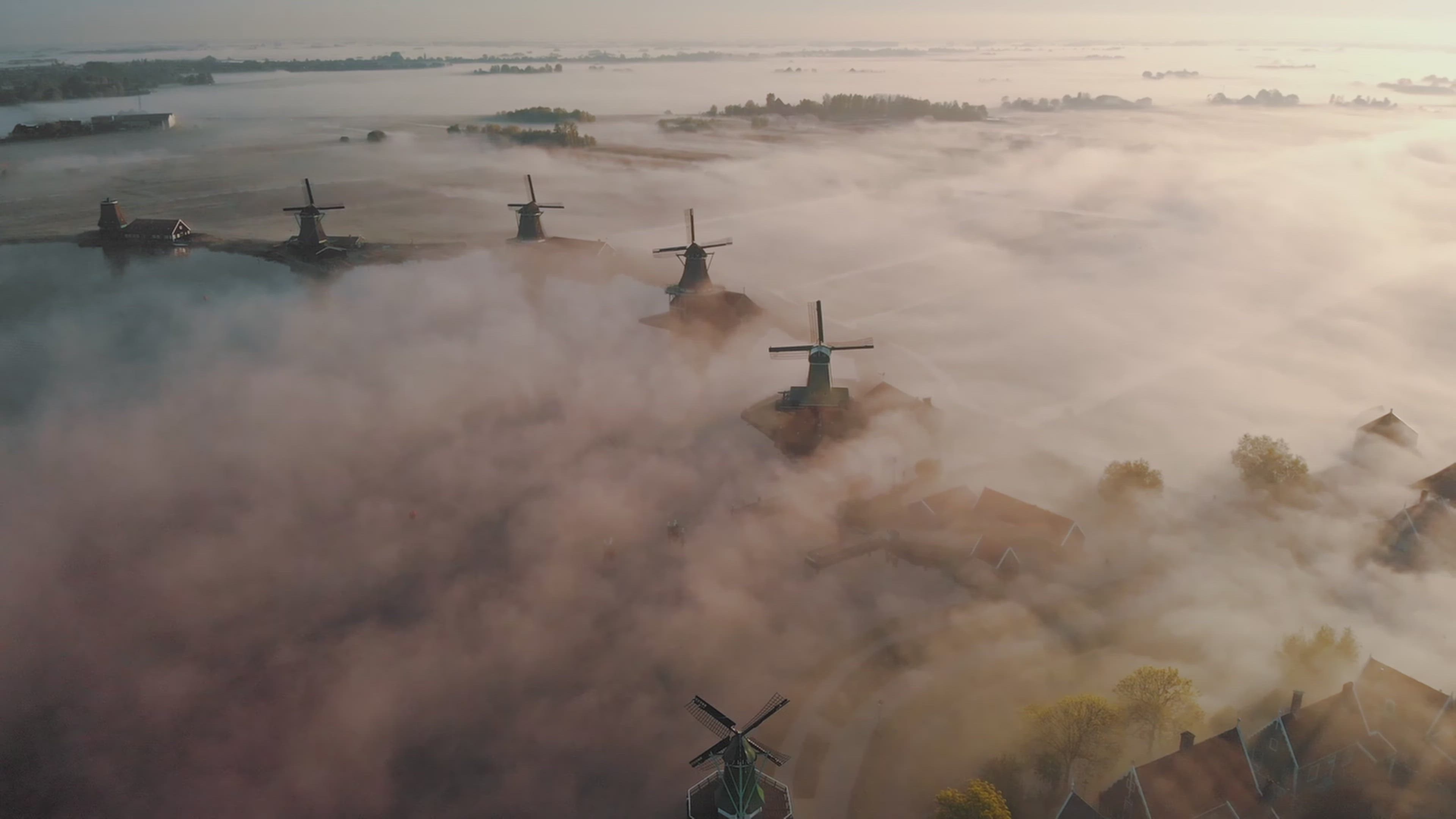Magical morning at the Dutch windmills (4K)