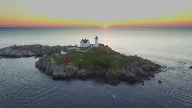 Abad_photography created this stunning drone video of one of the most well known lighthouses in New England. Cape Neddick Light sits on a tiny Nubble Island, just a few yards off of Cape Neddick, Maine. Opened in 1878, the lighthouse stands 12 meters (about 40 ft.) tall. It is still operational. Cape Neddick is one of the peninsulas which justs into the Atlantic Ocean from the Maine coast. Due to the rocky and difficult-to-navigate coastline, lighthouses have long played an outsized role here.