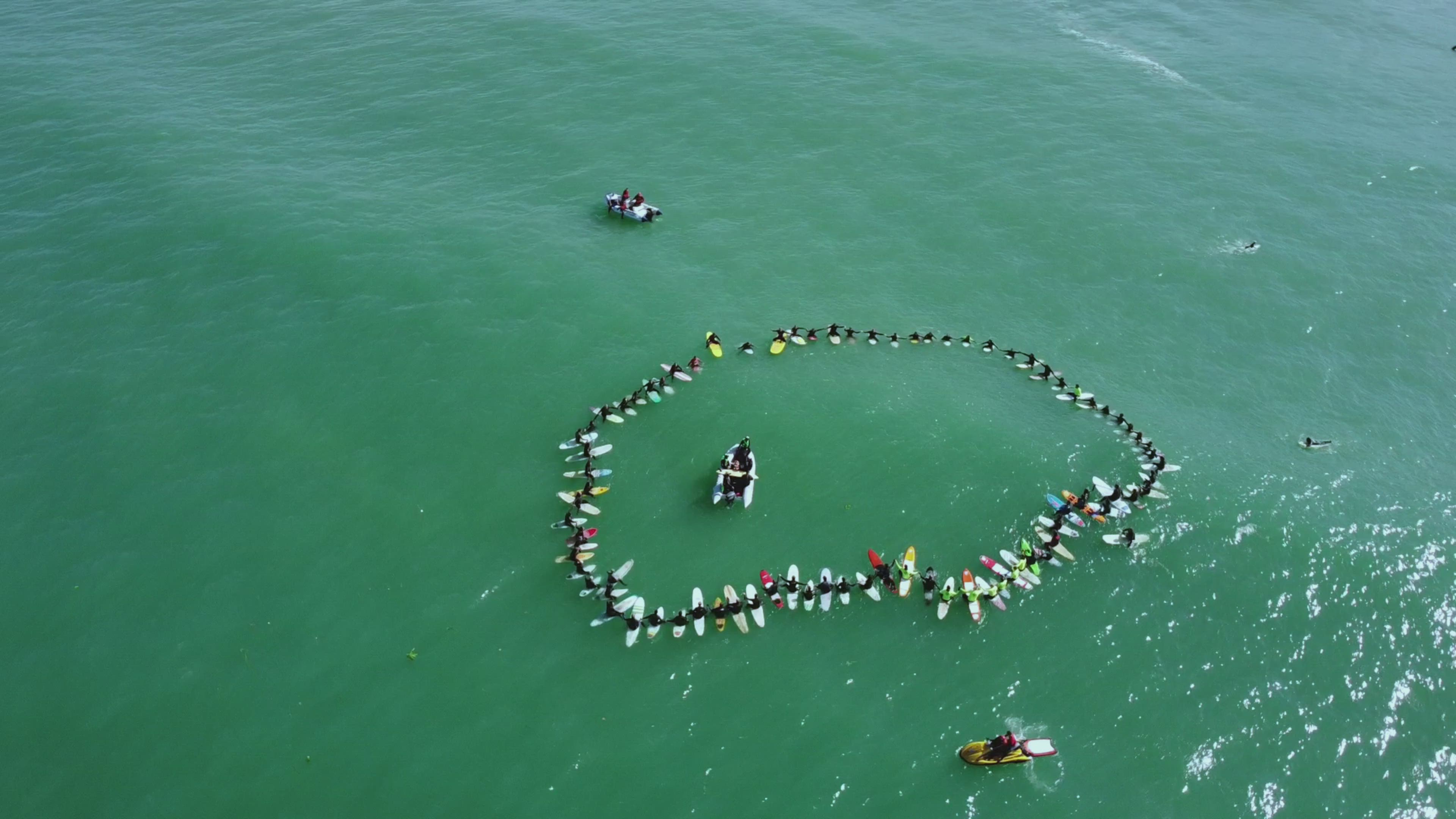 Paddle out - Surfers pay tribute to argentine dead surfer Carlos Di Pace. Mar del Plata. Argentina