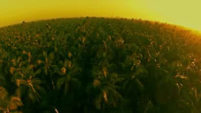 Flying over a palm tree plantation as the sun rises in the distance. Video via Al Caudullo Productions (Vimeo)