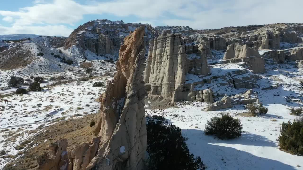 Plaza Blanca is a popular hiking area in northern New Mexico. It's situated about an hour drive north of Santa Fe, in the north-central part of the state. The rock formations here were immortalized in a painting by Georgia O'Keeffe, who had a clear view of the scene from her house in nearby Abiquiu. Her masterpiece, entitled the White Place in Sun, is considered one of the great works of 20th century American painting. Get a bird's eye view of the storied Plaza Blanca in this excellent drone video.