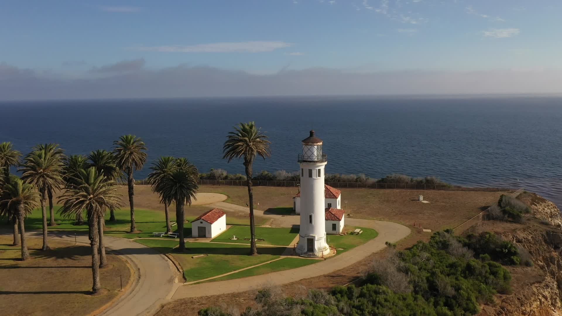 Aerial footage of the Point Vicente Lighthouse and surrounding area.