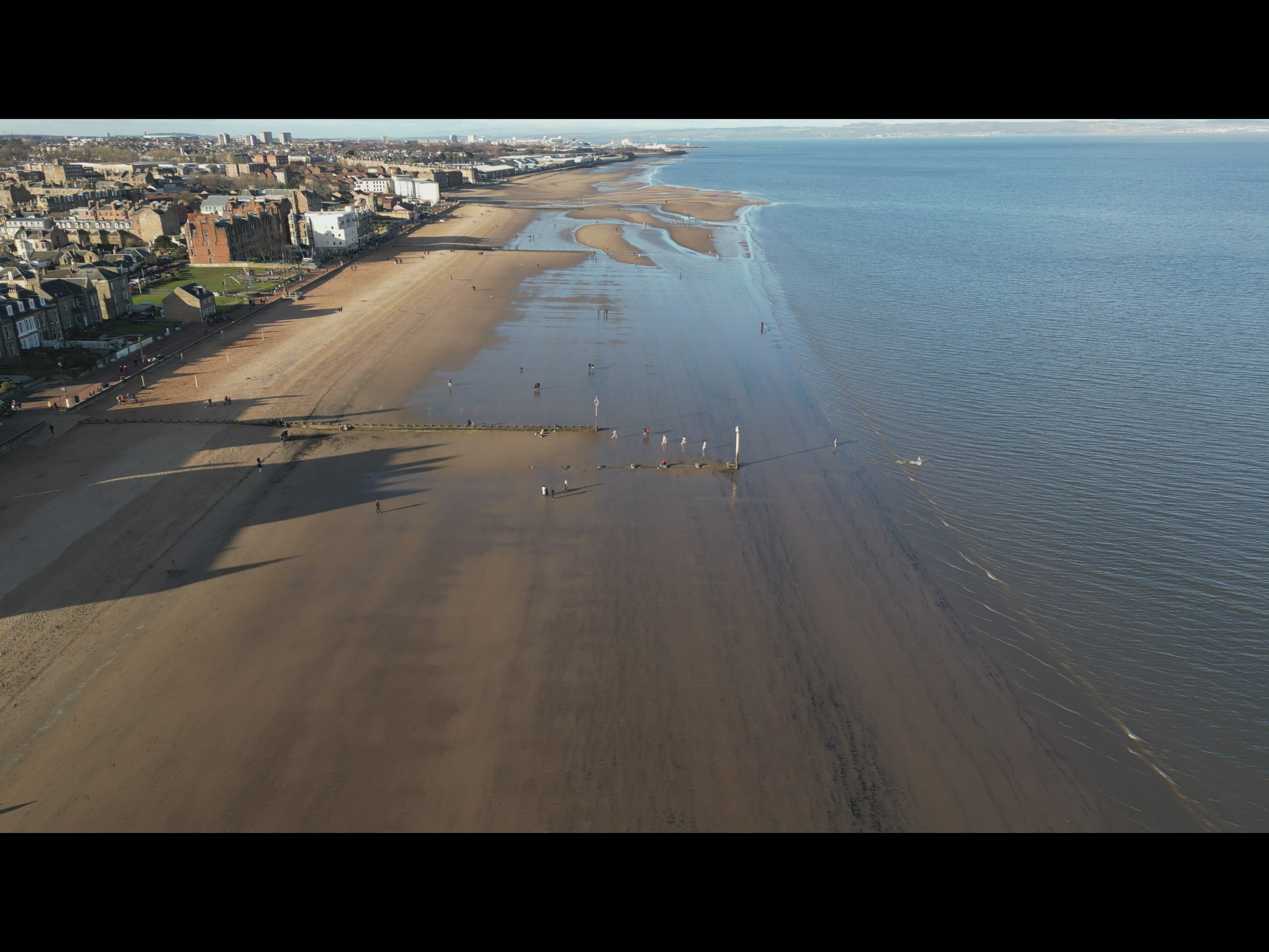 Portobello is a popular sandy beach in the Edinburgh suburb by the same name, slightly less than 2 miles east of the city centre, offering views across to the north side of the Firth of Forth and out towards Inchkeith Island. Being close to the city, it draws many summer visitors who flock here to swim, play in the waves and sunbathe. Kayaking and sailing are also popular here, with The Portobello Kayaking and Sailing Club based here, and beach volleyball games are often held next to the swimming club. The beach is interspersed with a few wooden groynes, and it is directly accessed from a promenade which backs the beach. Along the promenade, which is a good place to stroll along, taking in the views, are a selection of cafes and bars. Further facilities such as shops and restaurants can be found a short walk away in the town of Portobello. Many of the buildings are Georgian or Victorian in character and form part of a Conservation Area, including Portobello Swim Centre, a Victorian indoor swimming pool right on the promenade. The beach can be reached via a number of buses from Edinburgh city centre. Some roadside parking is available near the beach.