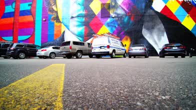 Capturing a cool view of the Bob Dylan mural in downtown Minneapolis