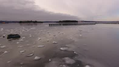 Flight around the frozen Wright's Cove in Halifax Harbour.