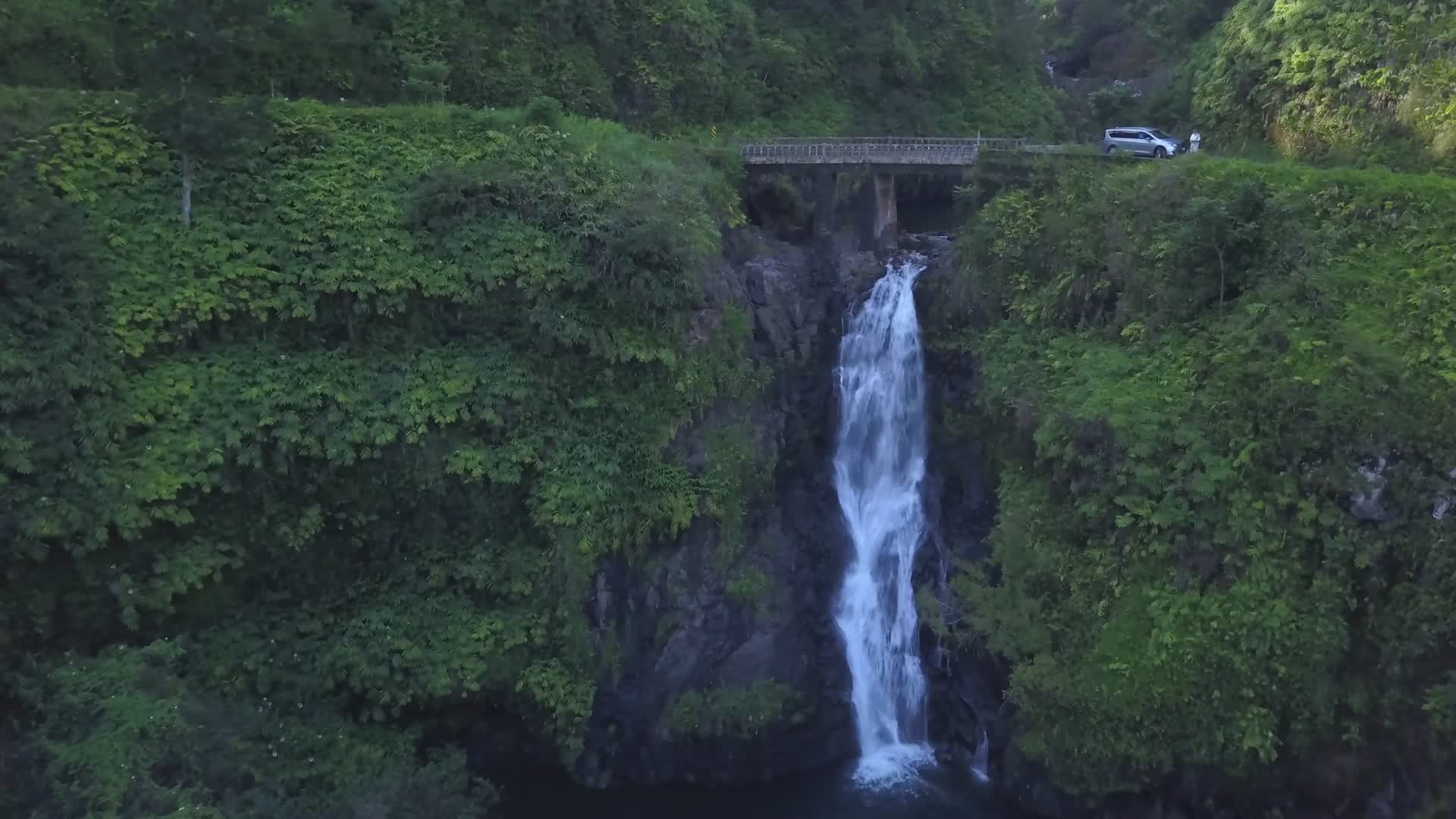 The Road to Hana is well known for its twists and turns and its narrow bridges as well as for it stunning waterfalls. But many of the waterfalls are at best difficult to see because of the narrow road and tight canyons. As a result a "drones eye view" provides an unsurpassed way to view these spectacular features.