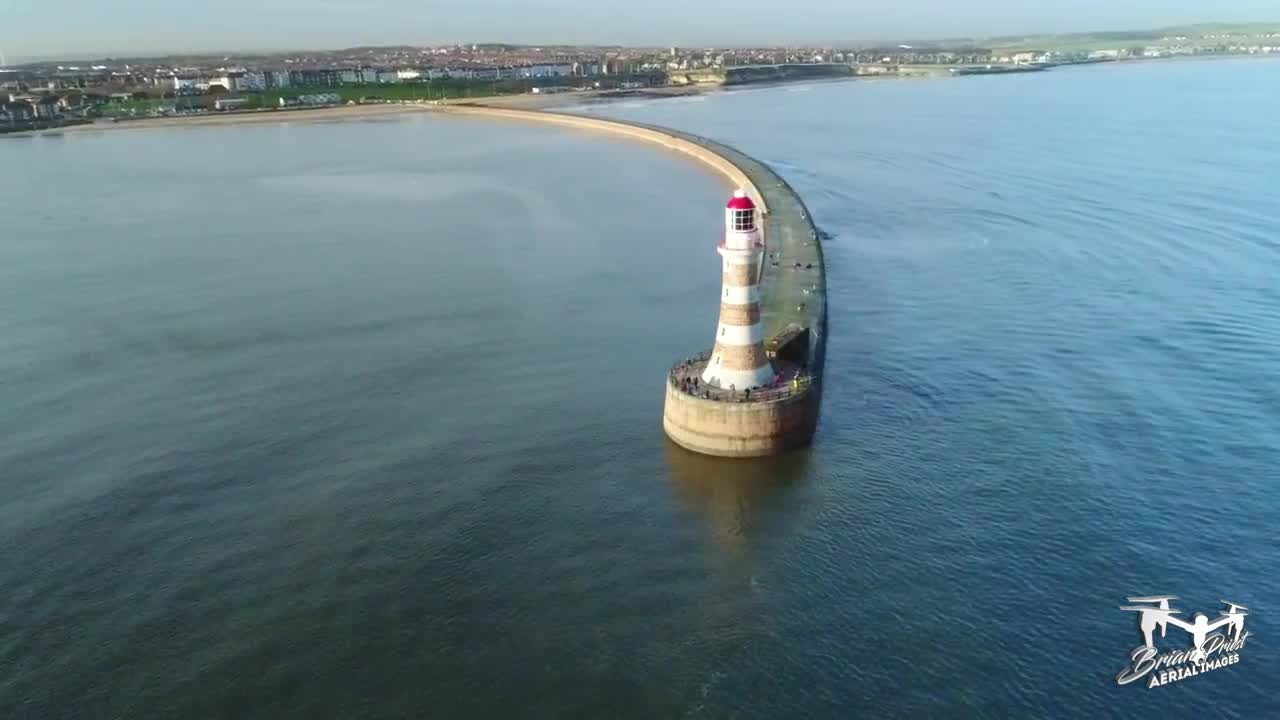 Contributor Brian Priest Aerial Images created this aerial look at the seaside town of Roker in North East England. It's situated on the North Sea coast just north of the city of Sunderland in the Tyne & Wear region. Much of the video is shot around the town's harbor. An outer harbor was created in the mid-19th century with the two curved breakwaters you'll see in the video. You'll also see the distinctive red-striped lighthouse at the head of the pier; it was opened in 1903 and is still operational.