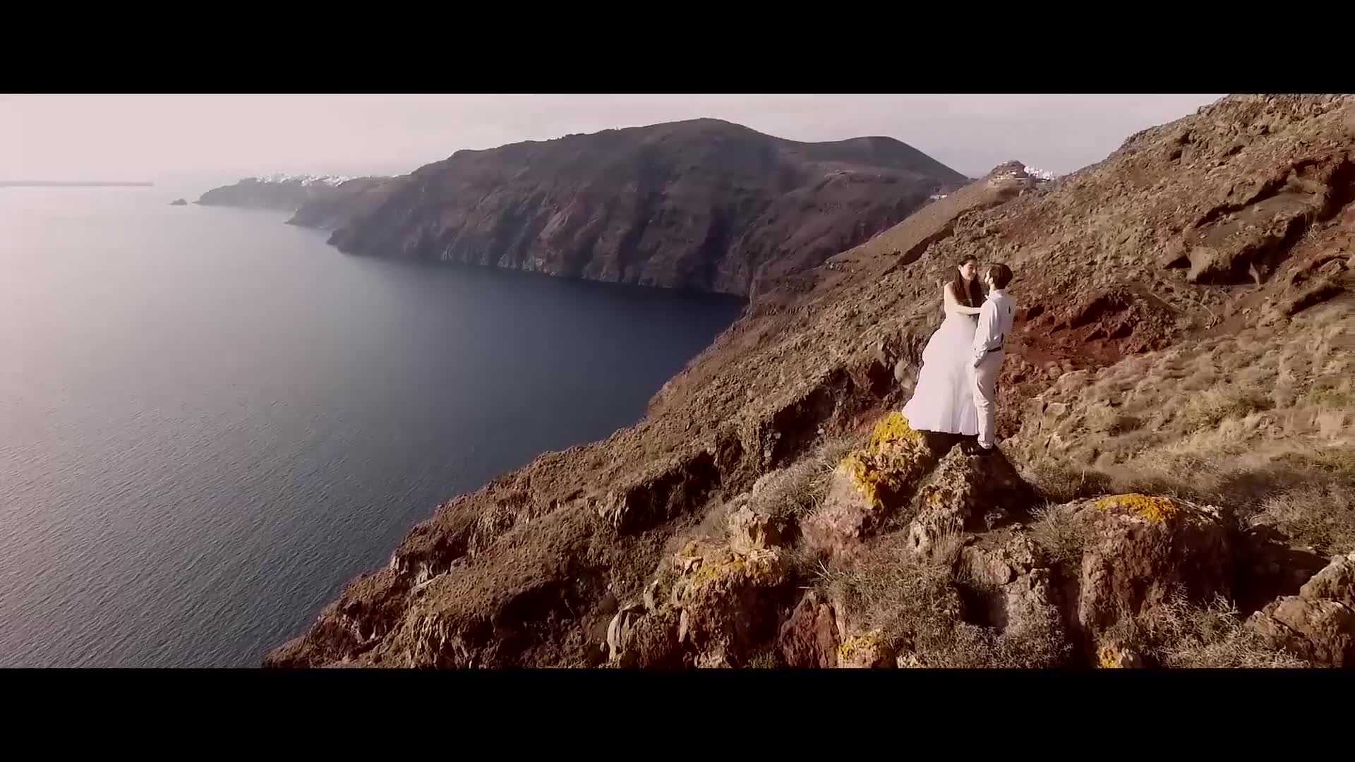 Santorini wedding drone shot