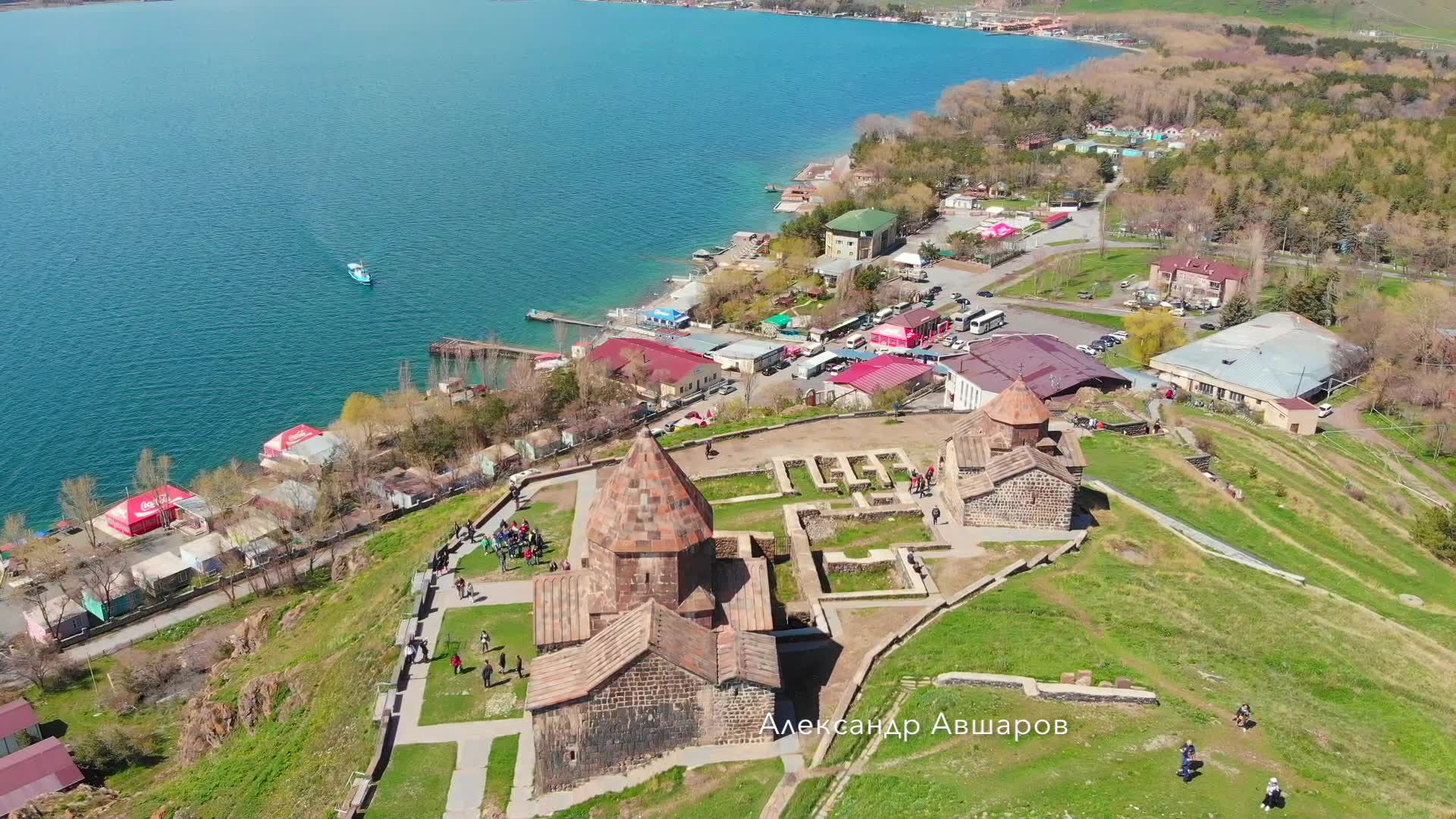Sevanavank is a monastic complex located on a peninsula at the northwestern shore of Lake Sevan in the Gegharkunik Province of Armenia, not far from the town of Sevan. Initially the monastery was built at the southern shore of a small island. After the artificial draining of Lake Sevan, which started in the era of Joseph Stalin, the water level fell about 20 metres, and the island transformed into a peninsula. At the southern shore of this newly created peninsula, a guesthouse of the Armenian Writers' Union was built. The eastern shore is occupied by the Armenian president's summer residence, while the monastery's still active seminary moved to newly constructed buildings at the northern shore of the peninsula. Due to easier accessibility (once it became a peninsula), good highway and railway connections with the Armenian capital Yerevan, a well-developed tourist industry in the nearby town of Sevan, and its picturesque location (although less picturesque than it was before the lake level drop), Sevanavank is one of the most visited tourism sights in Armenia. According to an inscription in one of the churches, the monastery of Sevanavank was founded in 874 by Princess Mariam, the daughter of Ashot I (who became a king a decade later). At the time, Armenia was still struggling to free itself from Arab rule. The monastery was strict as it was mainly intended for those monks from Etchmiadzin who had sinned. Jean-Marie Chopin, a French explorer of the Caucasus, visited there in 1830 and wrote of a regimen restraining from meat, wine, youth or women. Another explorer visited the monastery in 1850 and wrote of how manuscripts were still being copied manually. The two churches of the complex, Surp Arakelots meaning the "Holy Apostles" and Surp Astvatsatsin meaning the "Holy Mother of God", are both cruciform plan structures with octagonal tambours. Both are quite similar in appearance. Adjacent are the ruins of a gavit whose roof was originally supported by six wooden columns. Some of the remains of the gavit and its columns can be seen in the Yerevan Museum of History. Reconstruction and restoration efforts took place from 1956 to 1957. DJI Mavic Air