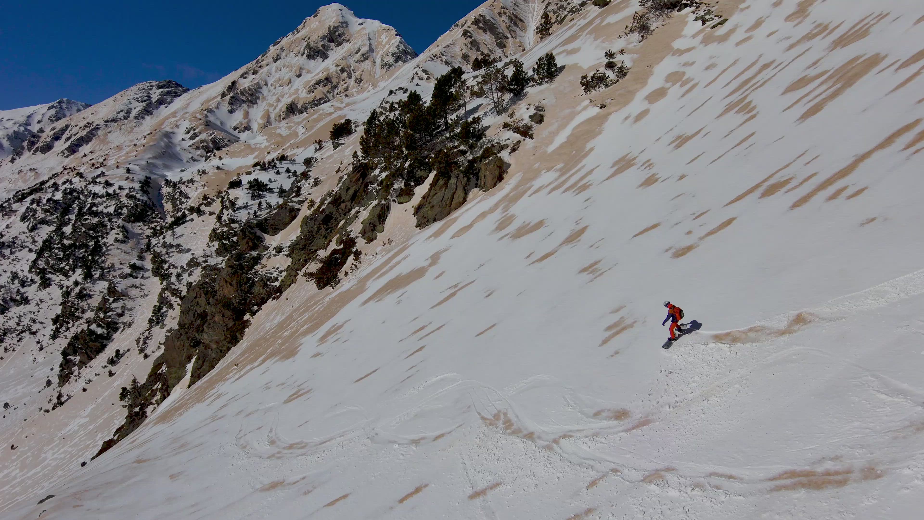 Skiing/snowboarding with Skydio 2 tracking drone in Ordino Arcalis, Andorra (Pyrenees)