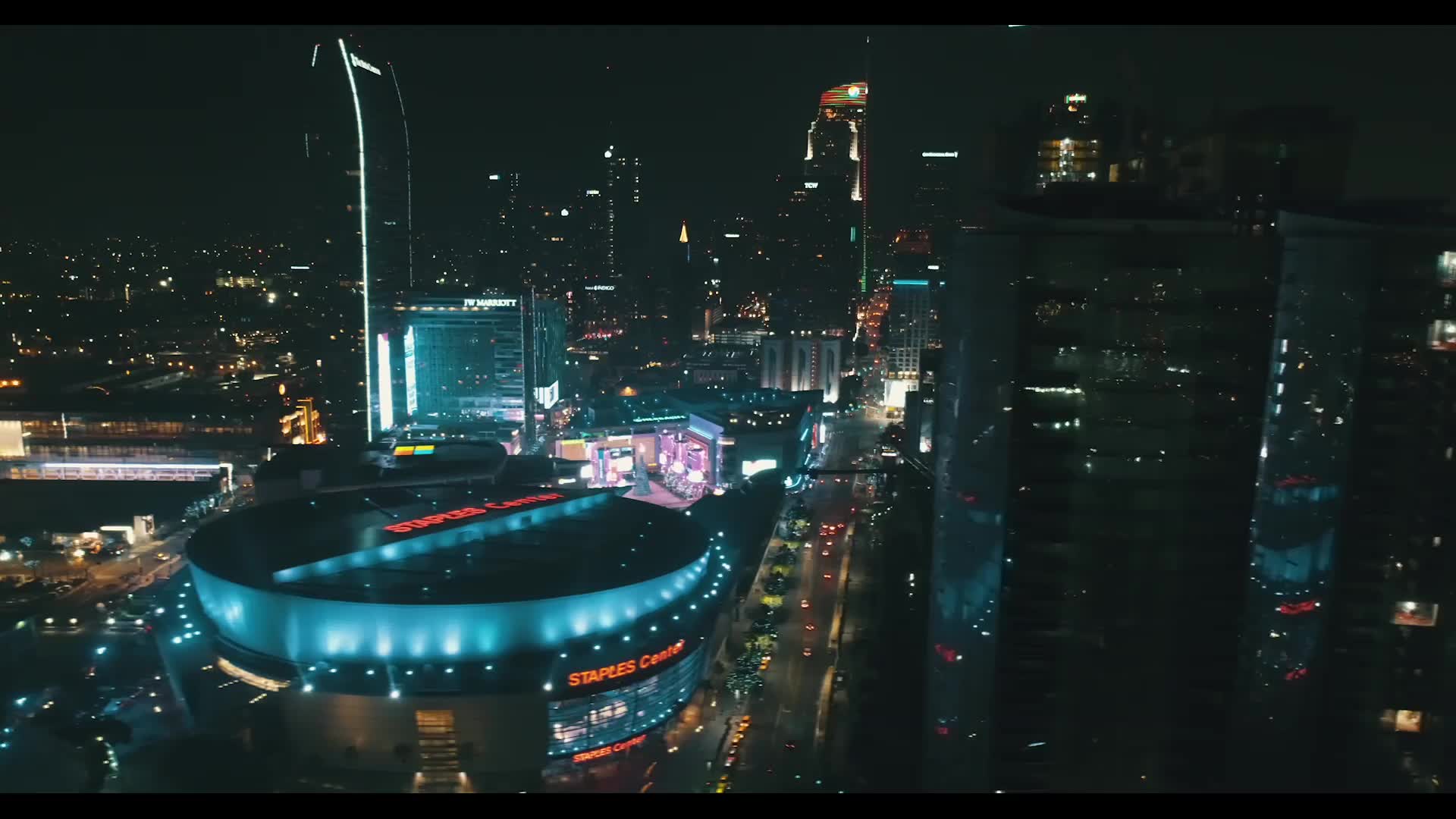 Contributor Jayxlamar created this amazing aerial video of the Staples Center in downtown Los Angeles. The stadium hosts the Los Angeles Lakers and Clippers of the National Basketball League, the Los Angeles Sparks of the Women's' National Basketball Association, and the Los Angeles Kings of the National Hockey League. It's also a major venue for concerts, boxing matches, and other major indoor events. Built in 1999, it's credited as being a major factor in the revival of downtown Los Angeles.