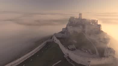Foggy morning on Spiss castle. On of the biggest ruins in middle Europe.