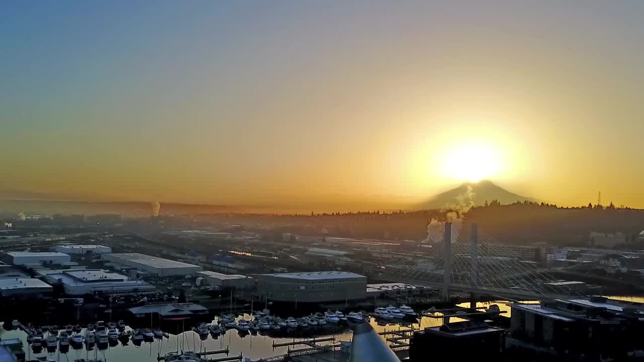 Tacoma with Mt Rainier Aerial views of Sunset over Puget Sound