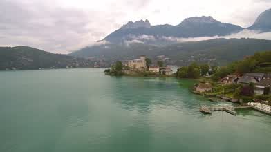 Aerial Views of a Frozen Lake in the French Alps