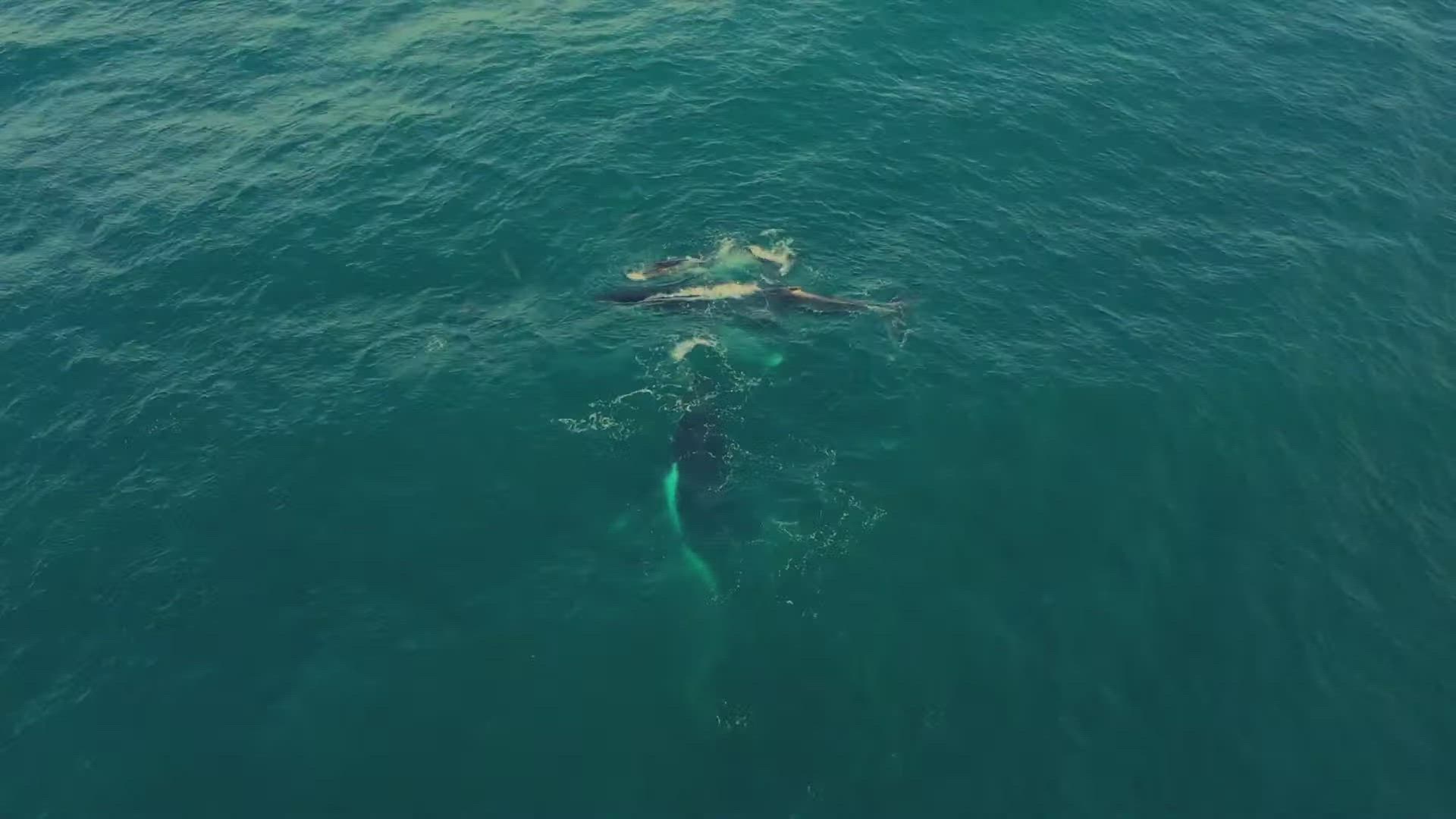 Playful whales breaching off the east coast of Australia